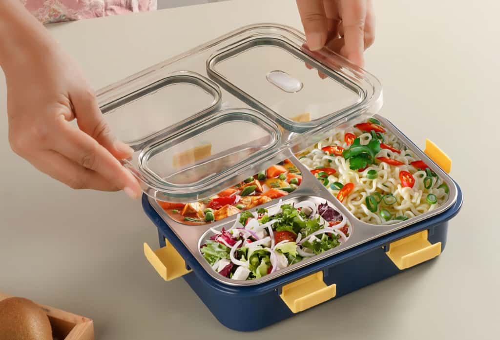 The premium stainless steel construction resists corrosion and withstands daily wear, while the compartmentalized design prevents flavors from mixing and allows you to pack varied portions.